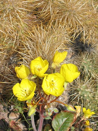 Golden evening primrose and cholla near Hells Gate