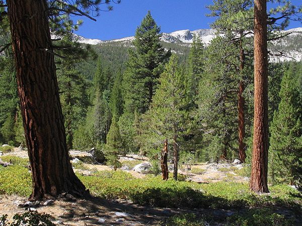 Second day passes through fine Jeffrey Pine forest along the John Muir Trail.