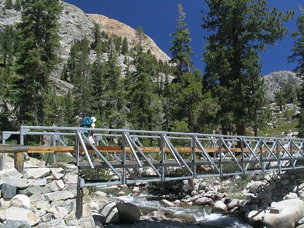 John Muir Trail bridge across Piute Creek. Here the trail crosses south into Kings Canyon National Park.